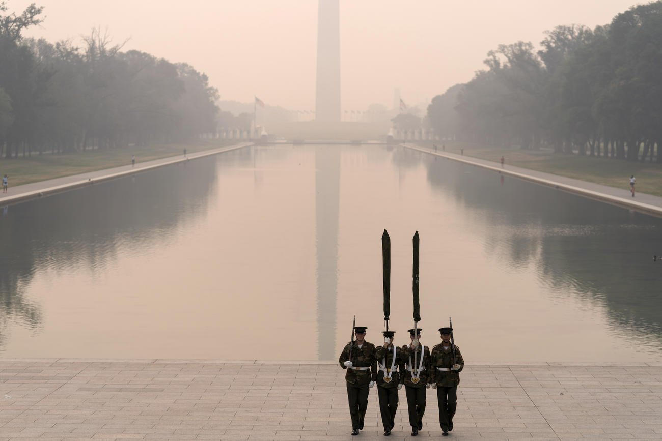 The smoke was heavy Thursday in Washington, D.C., where Joint Chiefs Chairman Gen. Mark Milley remarked on it during a National Defense University graduation held outdoors.